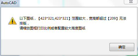 提示内容为:某尺寸图纸由于超过图纸纸张大小页排版不下。