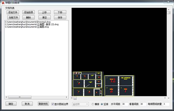 F、 每张图纸在预览框中的水平间距、垂直间距,每排图纸数量